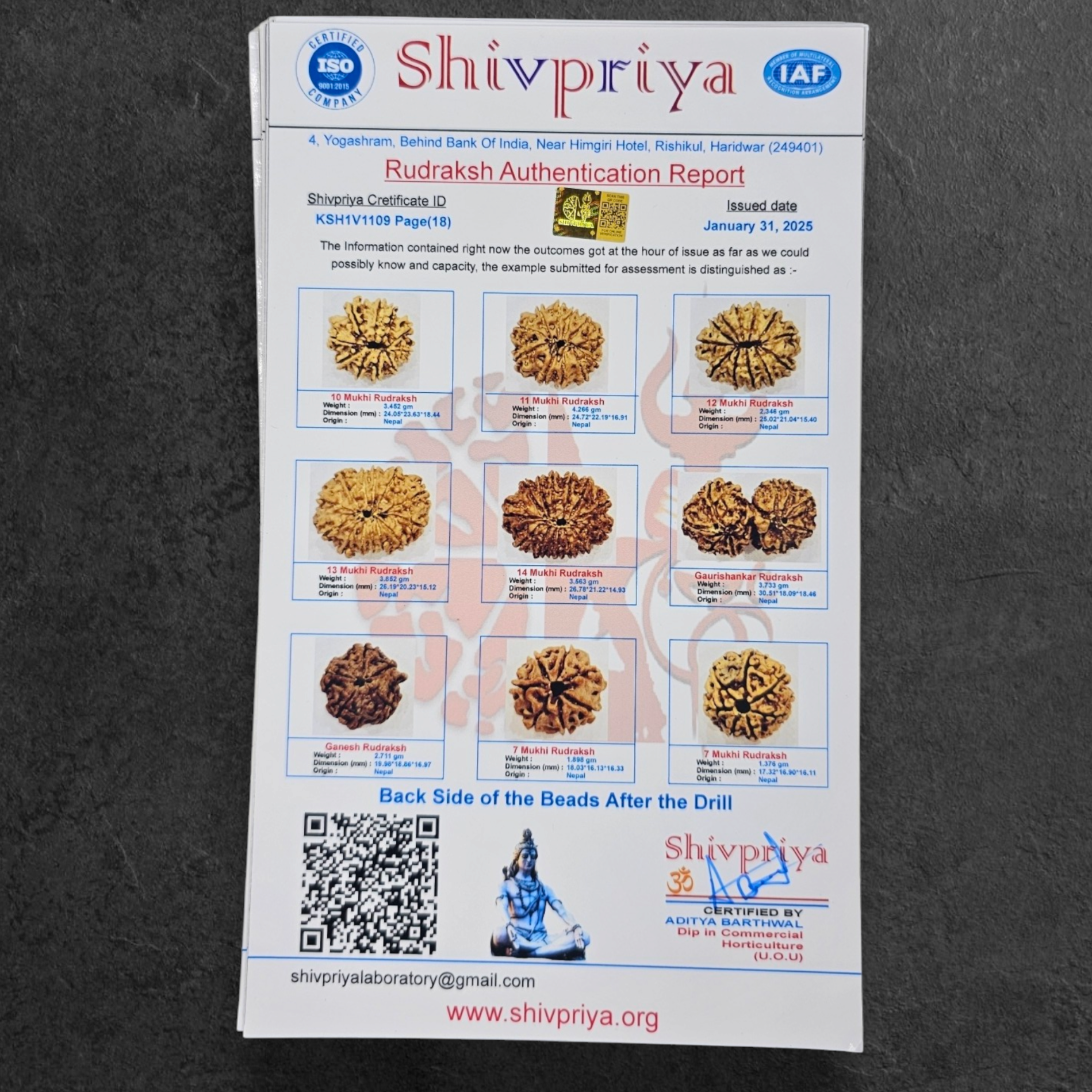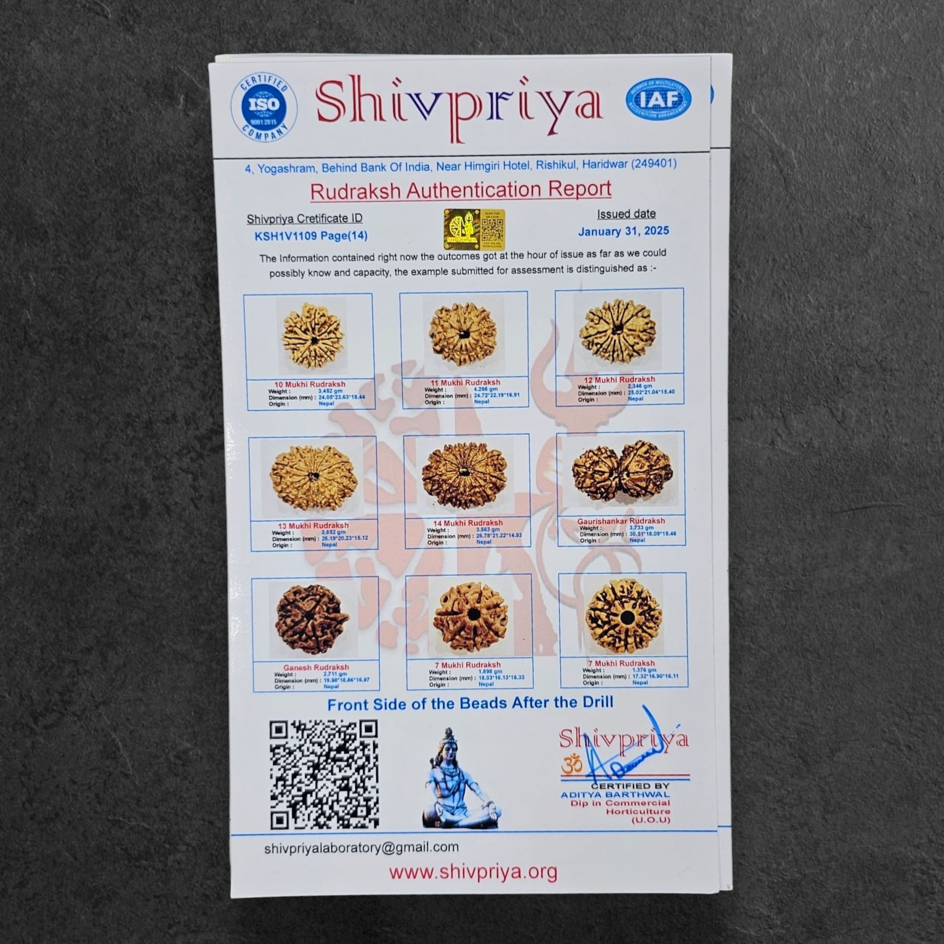 1 - 14 MUKHI RUDRAKSHA NEPAL SIDDH MALA WITH GOVERNMENT CERTIFIED DETAILED X-RAYS LAB REPORT