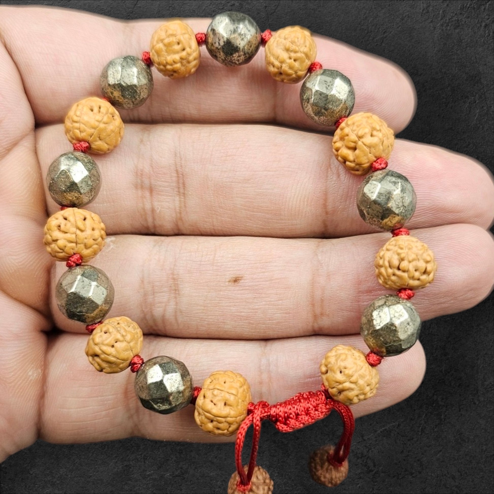 Materials: Genuine Pyrite stones + Natural 7 Mukhi Rudraksha beads