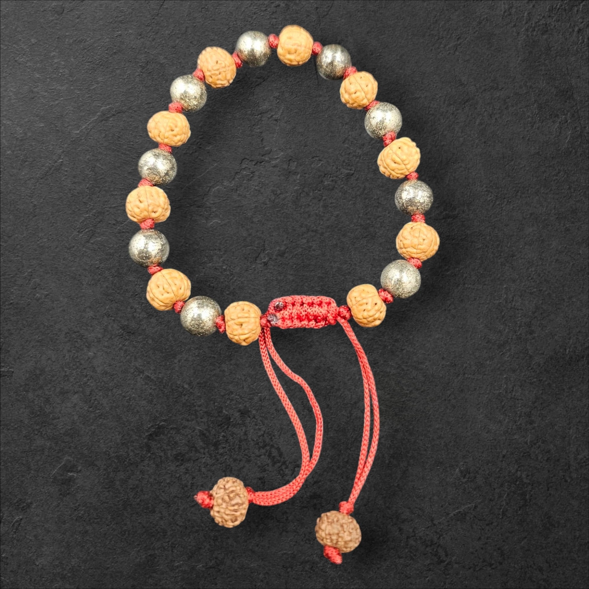 Materials: Genuine Pyrite stones + Natural 7 Mukhi Rudraksha beads