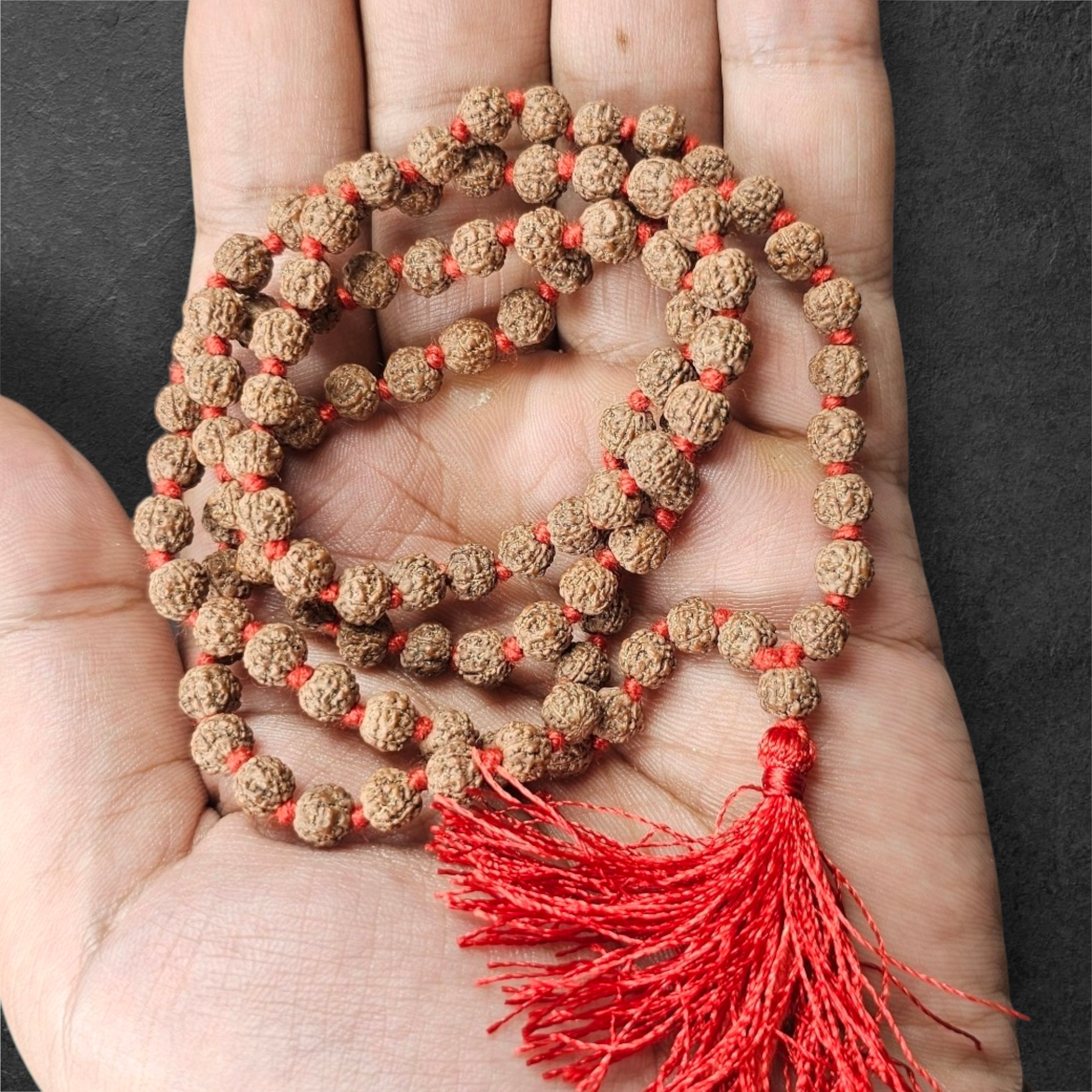 Each Rudraksha bead has a specific number of natural "mukhis" (faces) on it, and the number of faces corresponds to different powers or blessings. A typical mala consists of 108 beads, and it is used for chanting mantras, such as the "Om Namah Shivaya" mantra, to bring peace, focus, and spiritual growth. The Rudraksha beads are believed to have various healing and spiritual benefits, including: