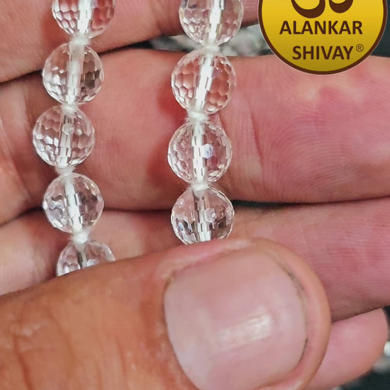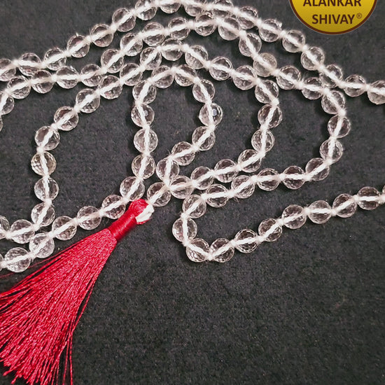 SPHATIK MALA DIAMOND CUT CLEAR BEADS (108 +1 BEADS)