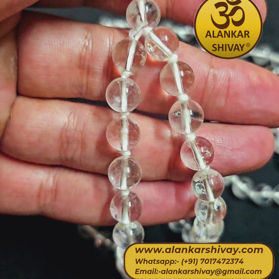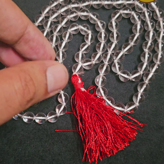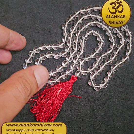 A Sphatik Mala is a prayer mala made from Sphatik (also known as Crystal Quartz), a highly revered and powerful crystal in spiritual practices. The Sphatik Mala is considered auspicious in many cultures, especially in Hinduism and Buddhism, and is used for meditation, prayer, and mantra chanting. The crystal beads are believed to carry high spiritual vibrations, making this mala particularly effective for deepening spiritual practices.